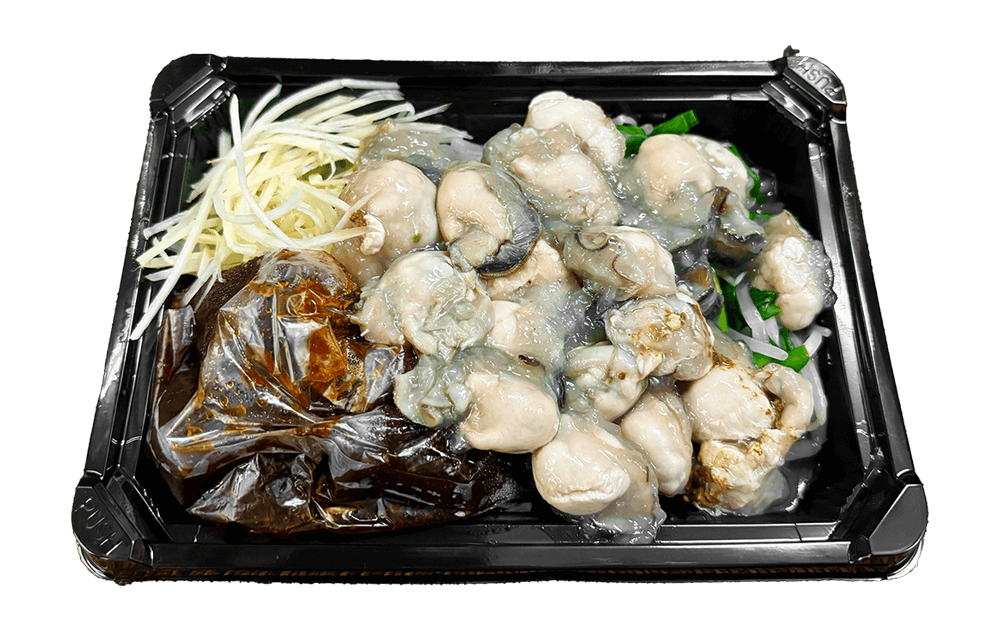 鮮蚵川燙保持滑嫩,搭配蒜泥醬汁調味