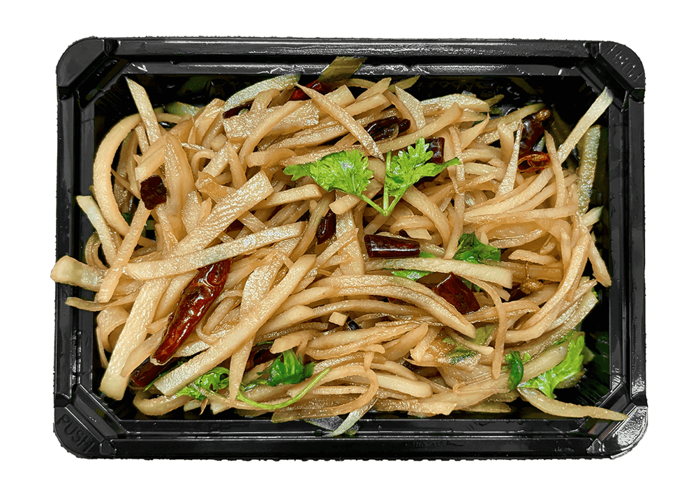 馬鈴薯絲搭配乾辣椒、蒜末快炒,酸香開胃爽脆